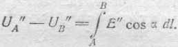 Так как путь интегрирования в первом и во втором случаях один и тот же и в то же время для соответствующих точек будем иметь Е"<Е', то, следовательно: ua"-ub"<ua'-ub'. Обозначая емкость конденсатора во втором случае (рис. 128) через С2, имеем: Q=C2(UA"-UB").