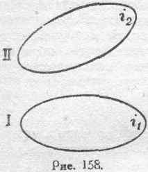Остановимся теперь на рассмотрении системы, состоящей из каких-либо двух проводящих цепей, по которым протекают электрические токи i 1 и i 2 (рис. 158).