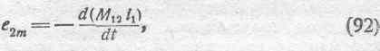Таким образом, подобно полному магнитному потоку, сцепляющемуся со второй цепью, и полная электродвижущая сила, индуктируемая в этой цепи, состоит из двух слагаемых. Первое слагаемое есть электродвижущая сила самоиндукции во вторичной цепи:
