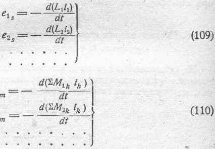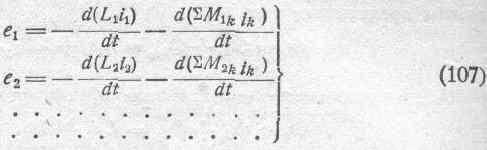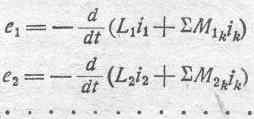 На основании всего вышеизложенного мы можем, подводя итоги, написать ряд нижеследующих соотношений для электродвижущих сил, индуктируемых в отдельных цепях рассматриваемой системы: