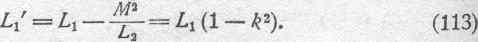 При всех значениях коэффициента связи, больших нуля и меньших единицы, значение действующего коэффициента самоиндукции L' 1 будет больше нуля и меньше L 1, т. е.: 0 <l' 1 <l i. Таким образом, хотя истинный коэффициент самоиндукции каждого контура и является функцией только его геометрических размеров, но в случае системы из нескольких электромагнитно связанных между собою контуров, каждый из них ведет себя по отношению к внешней ЭДС как контур, обладающий коэффициентом самоиндукции L', величина которого для простейшего случая двух цепей определяется данным выше соотношением и может быть изменена путем изменения коэффициента связи k. Это именно и позволяет нам назвать величину:
