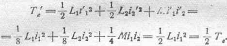 Это произошло за счет основного запаса электрокинетической энергии в системе, равного L 1 i 12. Половина этого запаса израсходована на совершение механической работы. Половина остатка пошла на увеличение энергии потока взаимной индукции. И только 1/4 L 1 i 12 составляет в конце концов энергию обоих потоков самоиндукции: