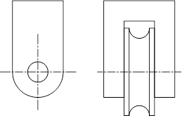 Figura 5 13. Pentru a completa ansamblul scripetelui, mutaţi ambele vederi ale cârligului în poziţia corespunzătoare desenului de referinţă. În ambele cazuri, utilizaţi opţiunea Snap to Midpoint a modului de apucare, pentru a alege punctul de mijloc al liniei de bază a cârligului ca punct de pornire pentru deplasare şi punctul de mijloc al părţii de sus a ansamblului scripetelui ca punct final al deplasării, ca în figura 6.