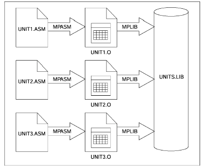 рис 2.2 Группировка объектных файлов в библиотеку.