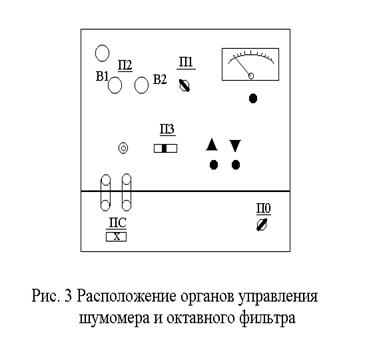 Точный импульсный шумомер типа PS202 (ГДР) предназначен для определения уровня постоянного, переменного и импульсного шума, а при работе с внешними фильтрами типа OF101 позволяет производить спектральный анализ шумов. Внешний вид шумомера с фильтрами приведен на рис.3, а частотные характеристики шумомера - на рис.4.
