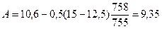 Например, показания сухого термометра 15°С, показания влажного 12,5°С, атмосферное давление 758 мм рт. ст., максимальная влажность водяных паров по температуре влажного термометра 10,6 г/м3 (определяют по прил. 4). Подставив цифровые значения в формулу, получают: