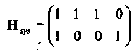 Пример 3. Рассмотрим двоичный линейный (4,2,2) код с порождающей матрицей