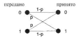 Рис. 5. Модель двоичного симметричного канала. Стандартной таблицей (или стандартной расстановкой) для двоичного линейного (n, k, dmin) кода С называется таблица всех возможных принятых из канала векторов r, организованная таким образом, что может быть найдено ближайшее к r кодовое слово v. Таблица 1. Стандартная таблица двоичного линейного блокового кода.