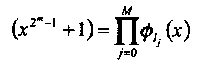 Примитивный элемент αполя GF(2m) (как и все другие) удовлетворяет уравнению α п = 1. Все ненулевые элементы поля являются некоторой степенью примитивного элемента. Таким образом, бином степени п = 2т - 1 имеет следующее разложение на неприводимые двоичные сомножители в двоичном поле: