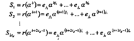 корни которого равны обратным величинам локаторов ошибок. Тогда справедливо следующее соотношение между коэффициентами многочлена локаторов ошибок и синдромами: