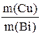 Пример 3. В одном сосуде имеется раствор, содержащий ионы меди, в другом - раствор, содержащий ионы висмута. Через оба раствора пропущено одинаковое количество электричества. Сколько выделилось висмута, если масса выделившейся меди равна двум граммам? Решение. По второму закону электролиза Фарадея: “Массы выделившихся на электродах веществ пропорциональны молярным массам эквивалентов ”: