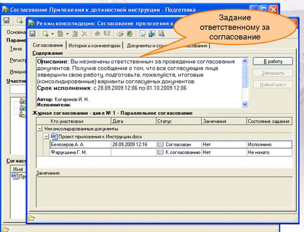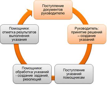 Рисунок 12 - Цикл обработки документов РМ Руководителя позволяет руководителю: а) Просматривать документы и отчеты; б) Редактировать документы; в) С помощью клавиатуры, стилуса или голосового ввода формировать указания к просмотренной информации; г) Просматривать результаты исполнения указаний и статистику по ним. Основные возможности по настройке: а) Настройка состава отображаемой руководителю информации: документов, отчетов; б) Настройка внешнего вида предоставляемой руководителю информации; в) Настройка внешнего вида (дизайна) РМ Руководителя; г) Поддерживается работа нескольких РМ с одним сервером DocsVision. Экран работы с документом (с возможностью корректировок)