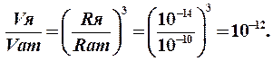 Отсюда следует, что если ∆Х Ядро имеет размытые очертания, что делает невозможным непосредственное точное определение линейного размера. Поэтому, чтобы получить данные о ядерных радиусах, используют косвенные приближенные методы, основанные на изучении рассеивания различных частиц ядрами вещества. Различные методы дают разные результаты. Но порядок величин при этом сохраняется и составляет 10–15 – 10–14м. Величина 10–15м = 1Ф (Ферми). При определении линейных размеров атомов дуализм электронов не учитывается, и в качестве атомного радиуса принимается половина длины химической связи, которую атом образовывает в соединении. Поэтому для каждого атома определено столько радиусов, сколько типов связи он может образовывать (ионный, ковалентный, металлический). Также методами квантовой химии по максимальной плотности электронного облака рассчитывается так называемый теоретический радиус изолированного атома. Все они отличаются друг от друга, но имеют одинаковый порядок 10–11 – 10–10м. Чтобы оценить относительную вероятность ядерных столкновений по сравнению с электронными столкновениями при прохождении потока заряженных частиц через вещество, найдем, какую часть объема занимает ядро в атоме. Для упрощения считаем, что они имеют форму шара: