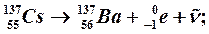 2. Бета–распад. Ряд естественных и искусственных радиоактивных изотопов претерпевает распад с испусканием электронов или позитронов. Бета–распад может быть трех видов: а) электронный β–распад характерен как для естественных, так и для искусственных радионуклидов, которые имеют излишек нейтронов. Этот распад в основном характерен для тяжелых радиоактивных изотопов. Электронному β–распаду подвергается около 46 % всех радиоактивных изотопов. При этом один из нейтронов превращается в протон, а ядро испускает электрон и антинейтрино. Заряд ядра и, соответственно, атомный номер элемента при этом увеличиваются на единицу, а массовое число остается без изменения. Приводим общие уравнения β–– распада: