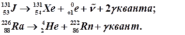 3. Испускание g–излучения не является видом радиоактивного распада (при этом не происходит превращение элементов), а представляет собой поток электромагнитных волн, возникающих при α– и β–распаде ядер атомов (как естественных, так и искусственных радиоактивных изотопов), когда в дочернем ядре оказывается избыток энергии, не захваченный корпускулярным излучением (α– и β– частицей). Этот избыток мгновенно высвечивается в виде g–квантов, что показано в нижеприведенных уравнениях: