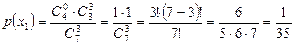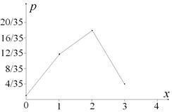 Для проверки убедимся, что сумма вероятностей равна 1. Пример 2. В партии из семи деталей четыре окрашенные. Наудачу взяты три детали. Построить ряд и многоугольник распределения случайной величины Решение: Случайная величина
