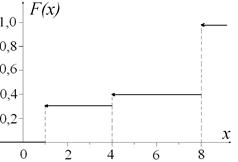 0,5 0,1 -1 0 2 x Рисунок 5. График интегральной функции распределения Пример 4. Дискретная случайная величина Х задана законом распределения