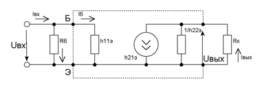 Для аналитического расчета обходимо представить транзистор схемой его замещения и к ней присоединить элементы схемы усилителя. Удобнее пользоваться h -параметрами транзистора. Для прикидочных расчетов можно предположить, что, коэффициент обратной связи