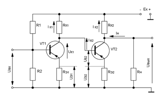 Рис. 20. Двухкаскадный усилитель постоянного тока