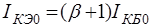 Задавать прямое напряжение на p-n переходе практически невозможно, как правило, задается прямой ток. Таким образом, для включения с ОБ характерна заданная величина тока эмиттера. Схема с ОБ обладает малым входным сопротивлением и не обеспечивает усиление по току, т.к. IК ≈IЭ. Для транзистора с ОЭ характерна заданная величина тока базы. Выходной ток пропорционален входному IК= β IБ +IКЭО (3) где b – статический коэффициент передачи тока базы в схеме с ОЭ, IКЭ0 – обратный ток коллектора при разомкнутой базе. Коэффициенты a, b и токи IКЭ0, IКБ0 связаны соотношениями