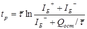 Окончание этапа рассасывания характеризуется тем, что концентрация избыточных зарядов на коллекторной границе базы падает до нуля и на коллекторном переходе восстанавливается обратное напряжение. Только после этого может начаться уменьшение коллекторного тока и формирование среза импульса. Длительность этого процесса называется временем рассасывания tр или временем задержки среза tхср. В конце этого этапа в базе остается некоторый остаточный заряд Qост. Время рассасывания определяется интегрированием выражения (47) в пределах от