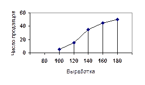 Рис.2 Гистограмма распределения продавцов по выработке.