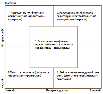 При попытке разрешения межличностных конфликтов могут наблюдаться различные стратегии поведения. Р. Блейк и Дж. Моутон выделяют: