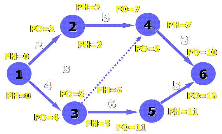 Работы, у которых совпадают ранние и поздние начала, ранние и поздние окончания, а также нет ни частного, ни полного резервов, являются работами критического пути. Частный резерв времени работы ij