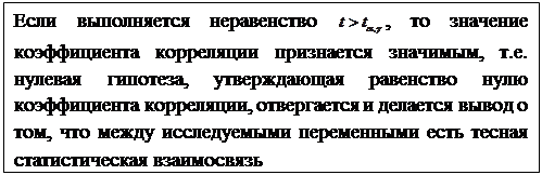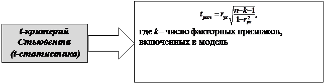 Значение t-критерия сравнивают с табличным tα,γ, где α- заданный уровень значимости (обычно принимается равным 0,05 или 0,01), γ=n-k-1 число степеней свободы.