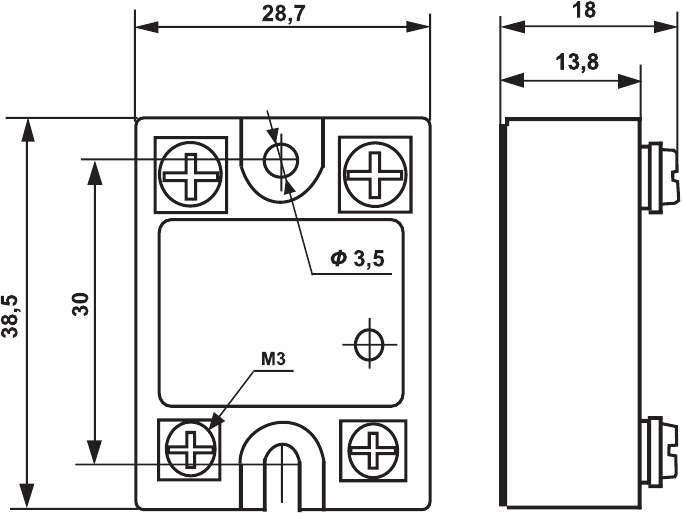 Структура условного обозначения: MD 1044 XXX M – тип корпуса твердотельного реле «М»; D – количество фаз «D»: однофазное; 10 – номинальный рабочий ток, А: 5;10;15; 44 – номинальное коммутируемое напряжение, В: «44»: 440 V AC; XXX – тип управляющего сигнала и коммутируемого напряжения (ZD 3 – управление 3…32 V DC, коммутация напряжения постоянного тока).