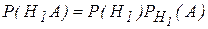 т. е. вероятность совмещения двух независимых событий равна произведению вероятностей этих событий. События А1, А2,..., Аn называются независимыми в совокупности, если вероятность наступления каждого из них не меняет своего значения после того, как одно или несколько из остальных событий осуществились. Пусть событие A может произойти только вместе с одним из попарно несовместных событий H1, H2,..., Hn, образующих полную группу. Тогда, если произошло событие A, то это значит, что произошло одно из попарно несовместных событий H1A, H2A,..., HnA. Следовательно,