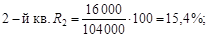 Виторг від реалізації продукції (ОРп) становитиме: 1-й кв. ОРП1 = 60 × 1500 = 90 000 (тис. грн); 2-й кв. ОРП2 = 60 × 2000 = 120 000 (тис. грн); 3-й кв. ОРП3 = 60 × 1800 = 108 000 (тис. грн). Собівартість продукції, що випускається (СВ) дорівнює: 1-й кв. СВ1 = 50 × 1500 = 75 000 (тис. грн); 2-й кв. СВ2 = 52 × 2000 = 104 000 (тис. грн); 3-й кв. СВ3 = 48 × 1800 = 86 400 (тис. грн). Прибуток від операційної діяльності продукції (П) становитиме: 1-й кв. П1= 90 000 – 75000 = 15 000 (тис. грн); 2-й кв. П2 = 120 000 – 104000 = 16 000 (тис. грн); 3-й кв. П3 = 108 000 – 86400 = 21 600 (тис. грн). Рентабельність продукції (R) розраховується за формулою 10.27: