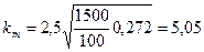 где km – коэффициент, учитывающий изменение условий охлаждения по длине поверхности корпуса, обдуваемого наружным вентилятором, /1/:
