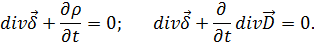 Если предположить, что уравнения б), в) и г) сохраняются и для переменного электромагнитного поля, то заметим, что уравнение а) совместимо с уравнением в); уравнение д) противоречит уравнению б). Следовательно, уравнение д) справедливо для постоянного тока, не справедливо для переменного тока. Максвелл устранил это противоречие введением нового понятия – тока смещения и соответствующим обобщением закона полного тока. Подставляя значение