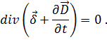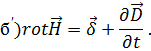 В проводящей среде при изменяющемся во времени электромагнитном поле должны наблюдаться оба тока – ток проводимости и ток смещения. Следовательно, для переменного электромагнитного пол уравнение б) запишется более общим уравнением