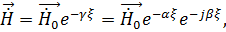 где Выражения (2.14) и (2.15) показывают: 1) распространяющаяся в поглощающей среде плоская волна затухает по экспоненциальному закону; 2) векторы 3) волна распространяется с постоянной фазовой скоростью Длина волны в поглощающей среде равна: