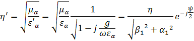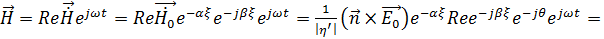 Из выражений (2.14) и (2.15) следует, что составляющие поля электромагнитной волны для идеальной непоглощающей среды получаются как частный случай этих выражений при Особенностью волны, распространяющейся в поглощающей среде, является то, что основные её параметры: фазовая скорость, коэффициент затухания, характеристическое сопротивление зависят не только от параметров среды, но и от частоты. Причём зависимость эта довольно сложная, и на практике она сказывается существенно. Так, если сигнал не является чисто гармоническим, то он, как правило, может быть представлен в виде суммы гармонических колебаний. В результате каждая гармоника будет иметь затухание, свою фазовую скорость и т. д. и поэтому при прохождении некоторого расстояния суммарный сигнал будет искажён. Вычислим среднюю мощность потерь (потери в единицу времени и в единице объема):