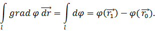 Соотношение (7) весьма характерно для градиента; из него следует, что если для какого-либо вектора Из выражения (8) следует, что градиент φ является вектором, имеющим направление быстрейшего увеличения φ и по величине равным производной от φ по этому направлению. Так как на поверхности уровня φ=const, то производная по любому направлению Таким образом, Вектор, являющийся градиентом скаляра φ, называется потенциальным вектором, а поле такого вектора – потенциальным. Для потенциального вектора имеет место такая важная теорема: линейный интеграл вектора Действительно,
