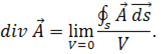 Будем теперь беспредельно уменьшать поверхность стягивания её на некоторую точку М внутри поверхности. При этом объём V, заключённый внутри поверхности, также будет беспредельно уменьшаться. Расхождение вектора в данной точке М обозначается символом div
