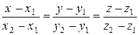 где Уравнения (3) называют каноническими уравнениями прямой в пространстве.