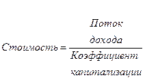 2.4.1. Метод прямой капитализации Данный подход базируется на принципе ожидания. Все доходные методы оценки бизнеса оценивают текущую стоимость будущих выгод от владения бизнесом. Подходы затратной и рыночной концепции делают такую оценку косвенно. Данные методы оценки считаются наиболее приемлемыми с точки зрения инвестиционных мотивов, поскольку любой инвестор, вкладывающий деньги в действующее предприятие, в конечном счете покупает не набор активов, состоящий из зданий, сооружений, машин, оборудования, нематериальных ценностей и т.д., а поток будущих доходов, позволяющий ему окупить вложенные средства, получить прибыль и повысить свое благосостояние. Прежде чем применить какой-либо из этих двух подходов, оценщик должен удостоверится, что: · можно составить прогноз будущих доходов (чистый денежный поток или чистый доход) с разумной степенью вероятности; · будущая деятельность предприятия будет продолжаться с темпом роста, который можно предсказать. Если поток дохода предприятия очень непостоянный, что делает невозможным предсказать результаты ее деятельности в будущем, то для оценки бизнеса такой компании лучше использовать другие подходы, например, подход на основе активов. Характеристика стоимости предприятия, полученной подходами капитализированных доходов и дисконтированных будущих доходов: · В зависимости от произведенных корректировок денежного потока (прибыли) и используемых коэффициента капитализации и ставки дисконта, стоимость может представлять либо стоимость контрольного пакета, либо стоимость миноритарной доли. Поэтому полученная стоимость может потребовать следующих корректировок: премия за контрольный пакет или скидка за миноритарную долю. · Если ставка дисконта или коэффициент капитализации были найдены на основе данных по сопоставимым компаниям, акции которых вращаются на фондовых рынках, то полученная стоимость оцениваемого предприятия будет представлять собой стоимость предприятия, как открытого. В этом случае может потребоваться применить скидку на недостаточную ликвидность. Этот подход предполагает использование следующих методов оценки: · Прямой капитализации потока доходов; · Дисконтированных денежных потоков; · Избыточных прибылей. Метод капитализированных доходов считается наиболее подходящим для оценки стоимости предприятия, если текущая деятельность компании может служить показателем ее будущей деятельности (предполагая обычный темп роста). Согласно методу прямой капитализации, для получения оценки стоимости предприятия годовой доход делится на соответствующий коэффициент капитализации. Формула оценки стоимости методом прямой капитализации: