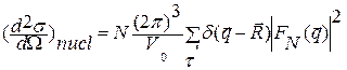 F N(q) – структурный фактор, d j – позиция атома в элементарной ячейке V 0 – объем элементарной ячейки.