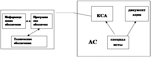 1. В процессе функционирования АС представляет собой совокупность комплекса средств автоматизации (КСА), организационно-методических и технических документов и специалистов использующих их в процессе своей профессиональной деятельности.