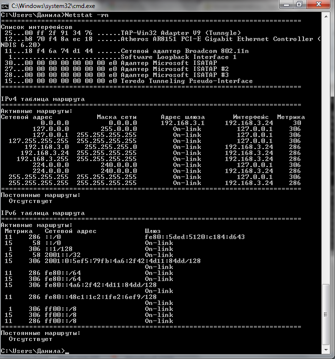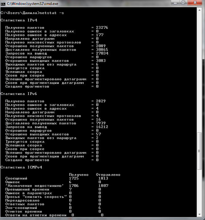 Route print Netstat –s