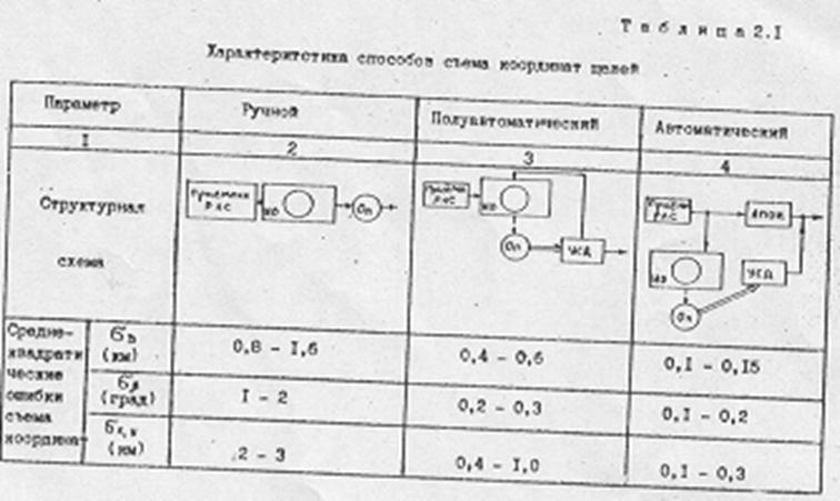 Таблица 2.1 Характеристика способов съема координат целей