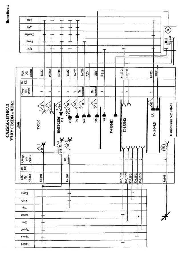 РАСПОРЯЖЕНИЕ ПО СВЯЗИ ШТАБА _____ омсбр (отбр) № _______. КП ______________________ карта _____________ изд. ________ г. 1. Противник _____________________________________________________________ 2. Основные задачи по обеспечению связи: ________________________________________________________________________________________________________________________________________________________________________________________________________________________________________________ 3. Узлы связи пунктов управления развертываются: КП ______________ к ________________, запасное место развертывания ____________, (место) (дата, время) направление перемещения ___________________________________________________, ТПУ ______________ к ________________, запасное место развертывания __________, (место) (дата, время) направление перемещения ___________________________________________________, ВУС ______________ к ________________. (место) (дата, время) 4. Радиосвязь обеспечить согласно радиоданным варианта _____________, вводимым в действие с ___________ с учетом изменений и дополнений, указанных в прил. 1. 5. Проводная связь обеспечивается от КП бригады с КНП _____ мсб (тб) по направлению, кабелем ____________________________. 6. Радиорелейная связь обеспечивается от … бригады с КНП ____ мсб (тб) по направлению ____________________________________. 7. Засекреченную телефонную связь обеспечить _______________________________. Передачу данных обеспечить ________________________________________________. Ключевые данные __________________________________________________________. В случае компрометации ключевых документов использовать ключевые документы _____________________ по сигналу ______________. 8. Режим работы и порядок использования радиоизлучающих средств связи установить: _________________________________________________________________. 9. Фельдъегерьско-почтовую связь обеспечить согласно выписке из графика работы подвижных средств ФПС (прил. 3). 10. Связь взаимодействия обеспечить: - с соседними батальонами бригады ___________________________; - с _____ мсб (тб) _____ омсбр (отбр) __________________________________. 11. При выходе из строя пунктов управления бригады правление связью принимает на себя начальник связи ____ мсб (тб). Сиганл приема управления _______________________. 12. Взвод по ремонту средств связи ____ рвб в районе _______________________. Взвод технического обеспечения батальона связи бригады в районе ________________. 13. Резерв связи _______ омсбр (отбр) в районе ______________________. 14. В интересах обеспечения связи _____ мсб (тб) выделяется __________________. 15. Управление системой связи бригады организуется по ________________________. 16. Готовность связи к _____________________________. 17. Донесения по связи представлять ежедневно к _________________ по состоянию на _________________.