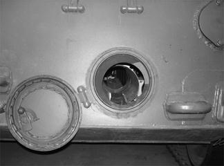 Для открывания плиты вручную необходимо нажать сверху вниз на трос, который потянет штоки вверх, сжимая пружины. Под действием веса плита упадет и откроет доступ к снарядам. При закрывании плиты вручную необходимо энергично поднять плиту до стопорения в верхнем положении.
