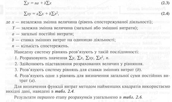 Для визначення функції витрат методом найменших квадратів необхідно розв'язати систему рівнянь: