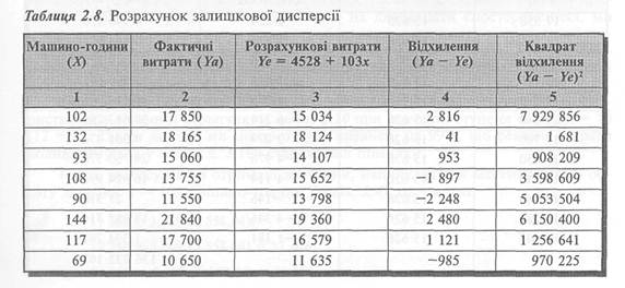 Для визначення величини залишкової дисперсії скористаймося даними табл. 2.6, а результати розрахунків викладемо в табл. 2.8.