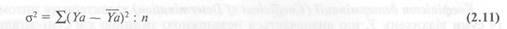 Залишкова дисперсія (аг2) визначає ту частину відхилень фактичних спостережень від лінії регресії, що зумовлена впливом випадкових або неконтрольованих чинників. Вона може бути встановлена як середнє значення квадрата різниці між фактичною та розрахованою величиною й обчислюється за формулою: